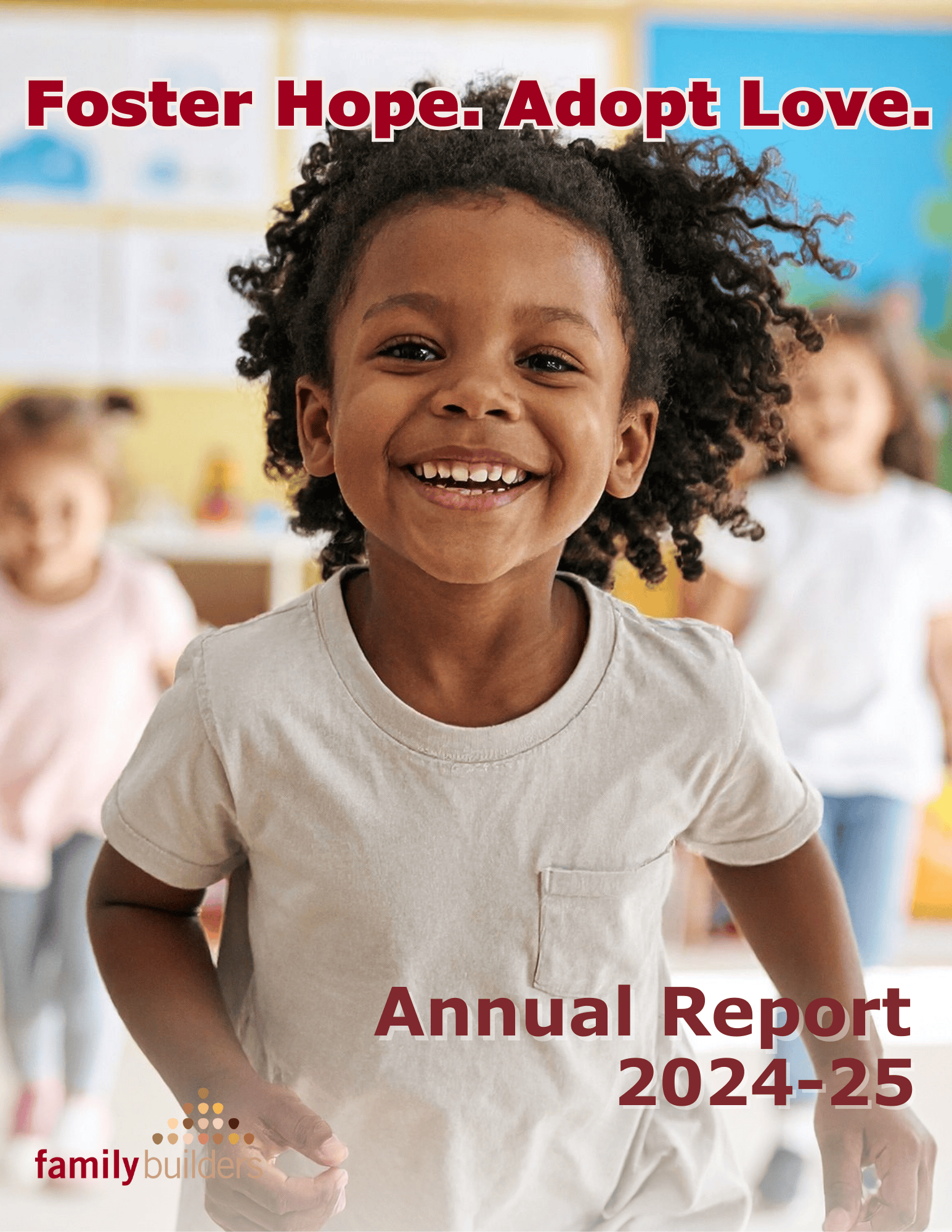 Every year, Family Builders publishes an annual report to share with the community, donors, funders, and our board. The annual report summarizes the agency’s financial results, provides an overview of the volume of services provided to children in foster care, and recognizes the generous donors who make our work possible.